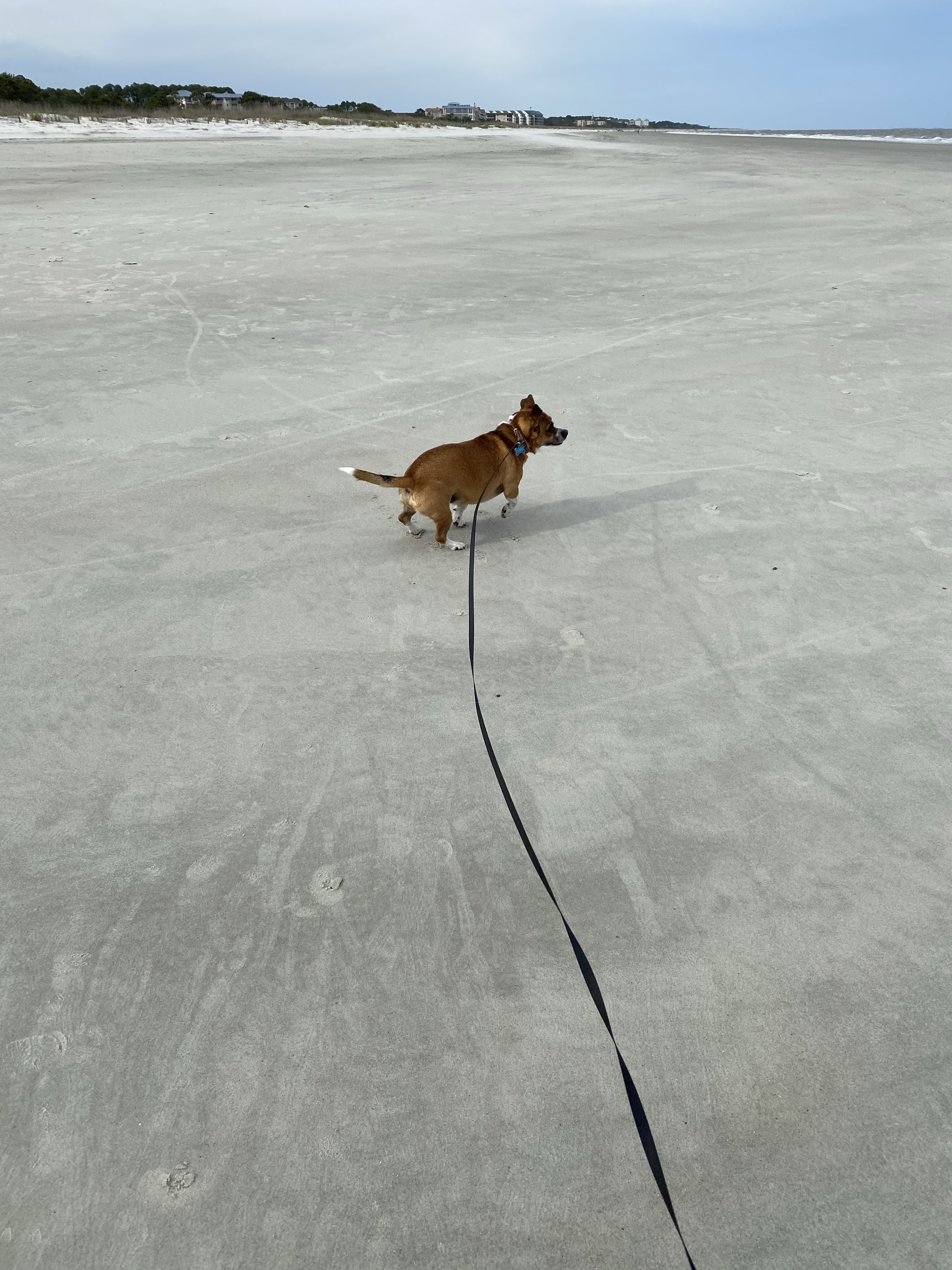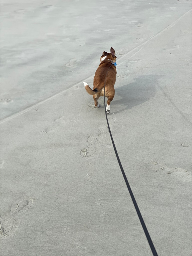 The next day when we all got up (okay fine I slept in the longest; Dad was a close second tho) mom had us put our shoes and leash on to go for a walk. Omg Mom wasn’t kidding. There was sand everywhere! I could run in it, dig, sniff it! It was all mine! I’m a very big fan of this! We walked along the beach for a long time until I got tired (Mom and Dad were too) then headed home. Man if everyday could be that good I would be a happy puppy.